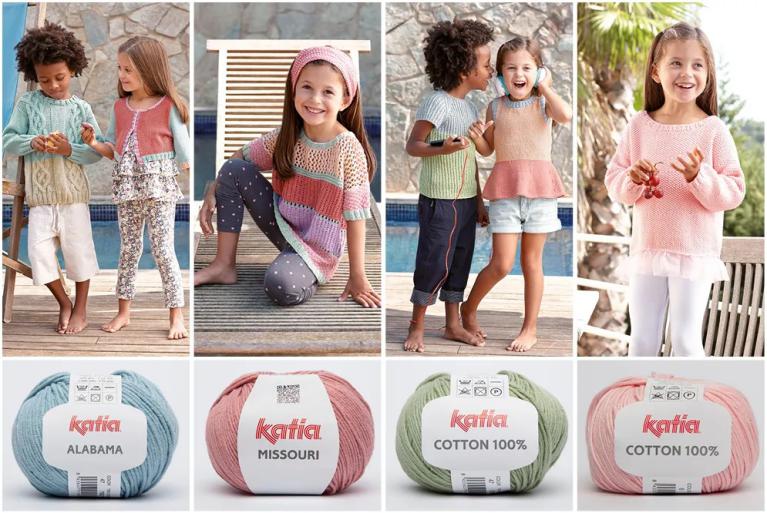 un pull enfant ou une robe de petite fille avec une seule pelote de Katia Fair Cotton Craft